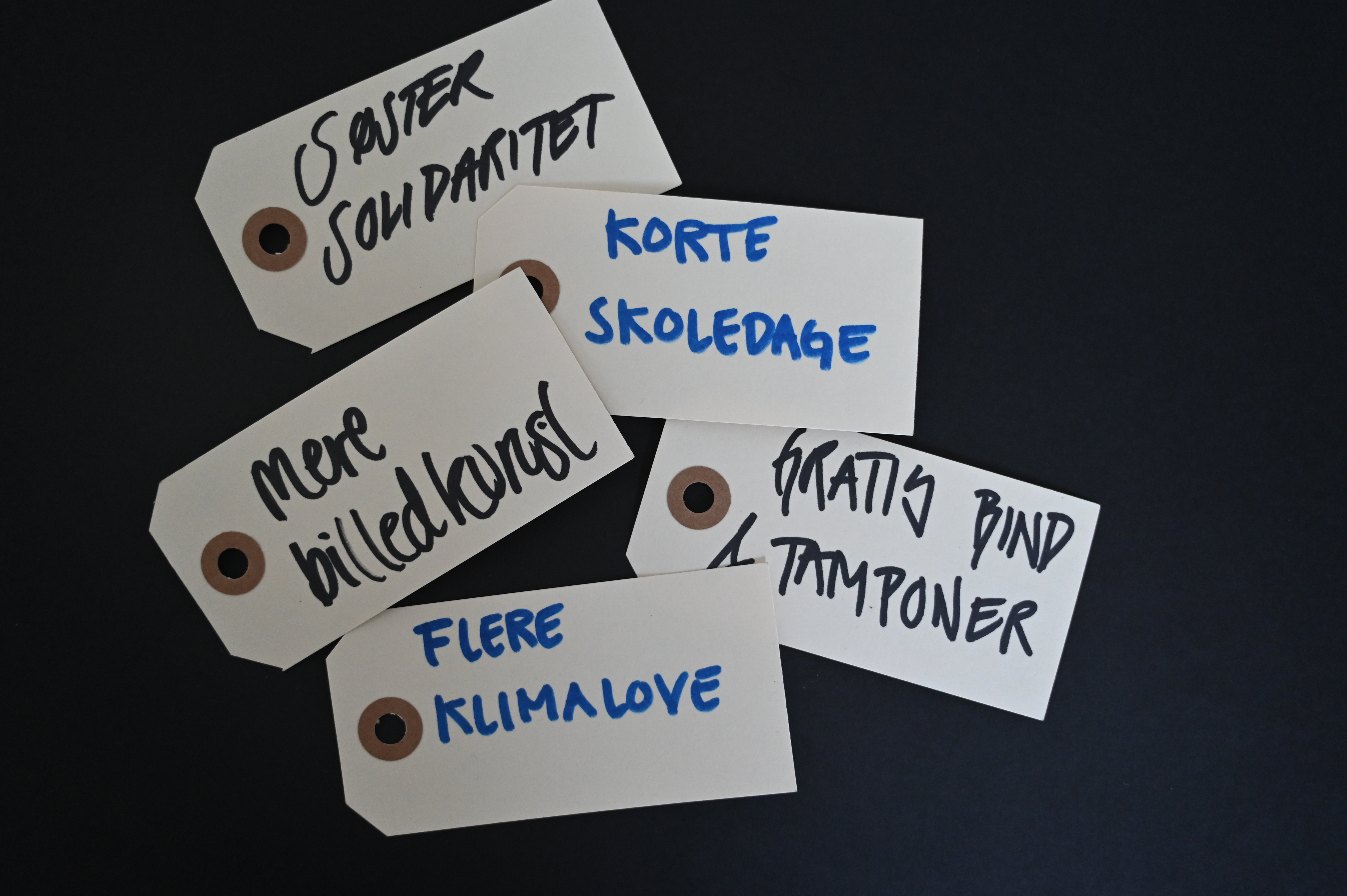 - Find den praktiske løsning der passer jer bedst. I kan fx hænge små ønskekort i snor på et træ i skolegården, hænge ønskesedler på en tørresnor med klemmer på kryds og tværs i gangene eller fællesrummet, lægge ønskesedler i en gennemsigtig boks, etc.